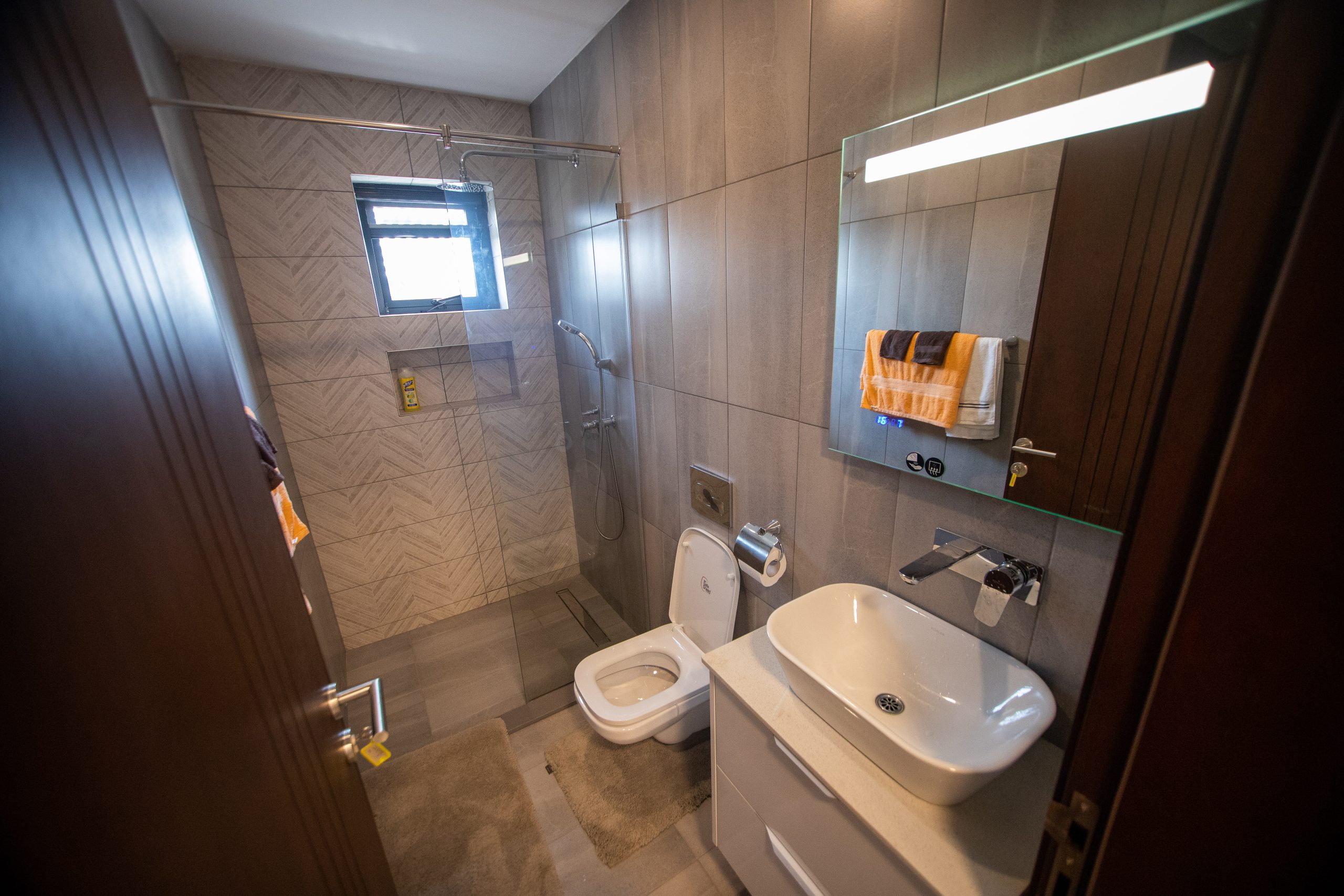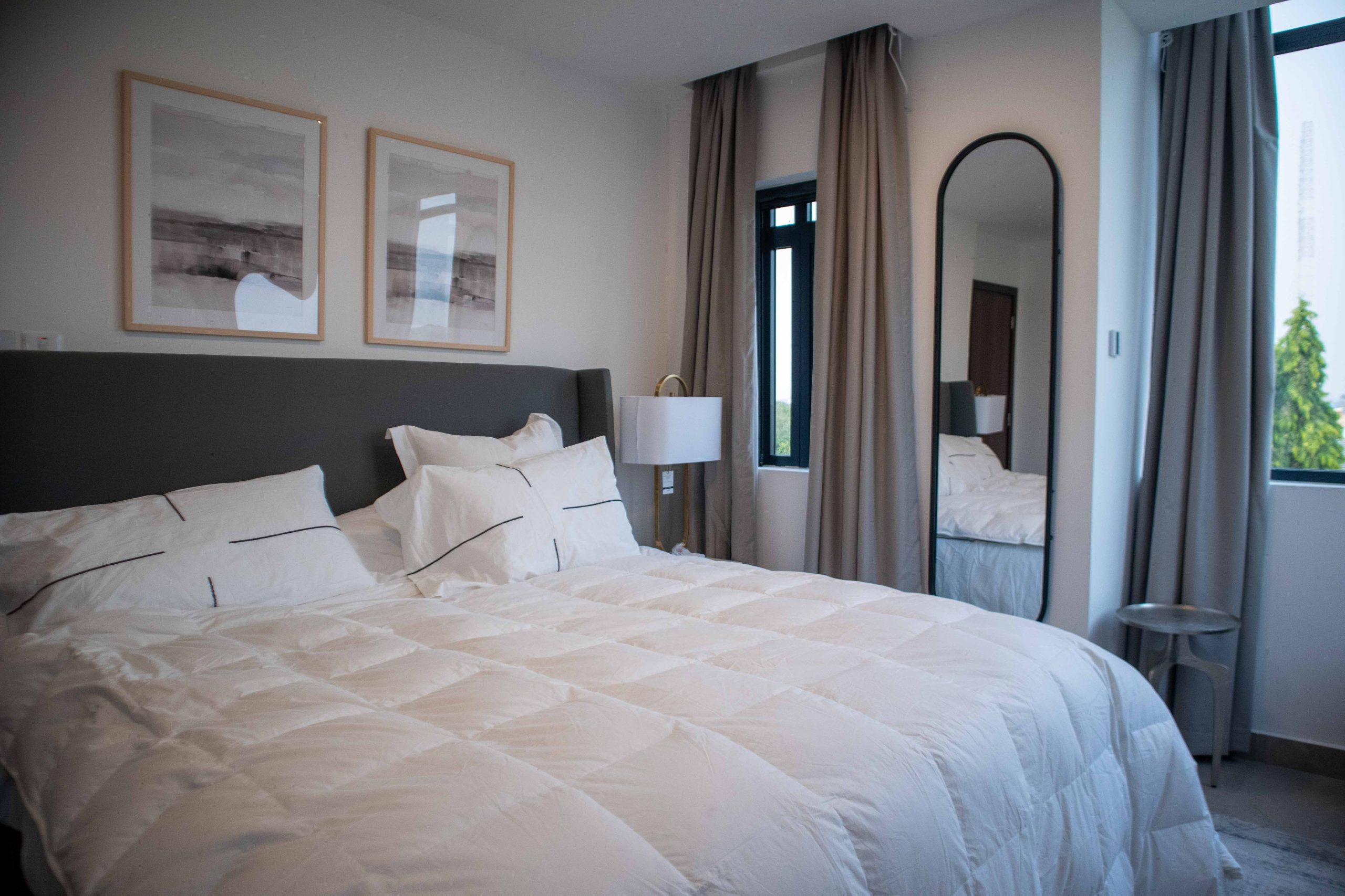 The two-bedroom apartments are offered in 98 sqm to provide a functional space. Both bathrooms are efficiently designed to stay dry and save water after every use. The fully equipped closable kitchen and utility balcony offer space, lots of light and a well-ventilated space. Each bedroom offers a unique view of the city. The master bedroom is opulently designed, with warming and natural tones to heighten relaxation of the tenant. The apartment has a balcony that serves a range of purposes a short-term or long-term tenant requires. Our two-bedroom apartments come in regular, premium and duplex options.