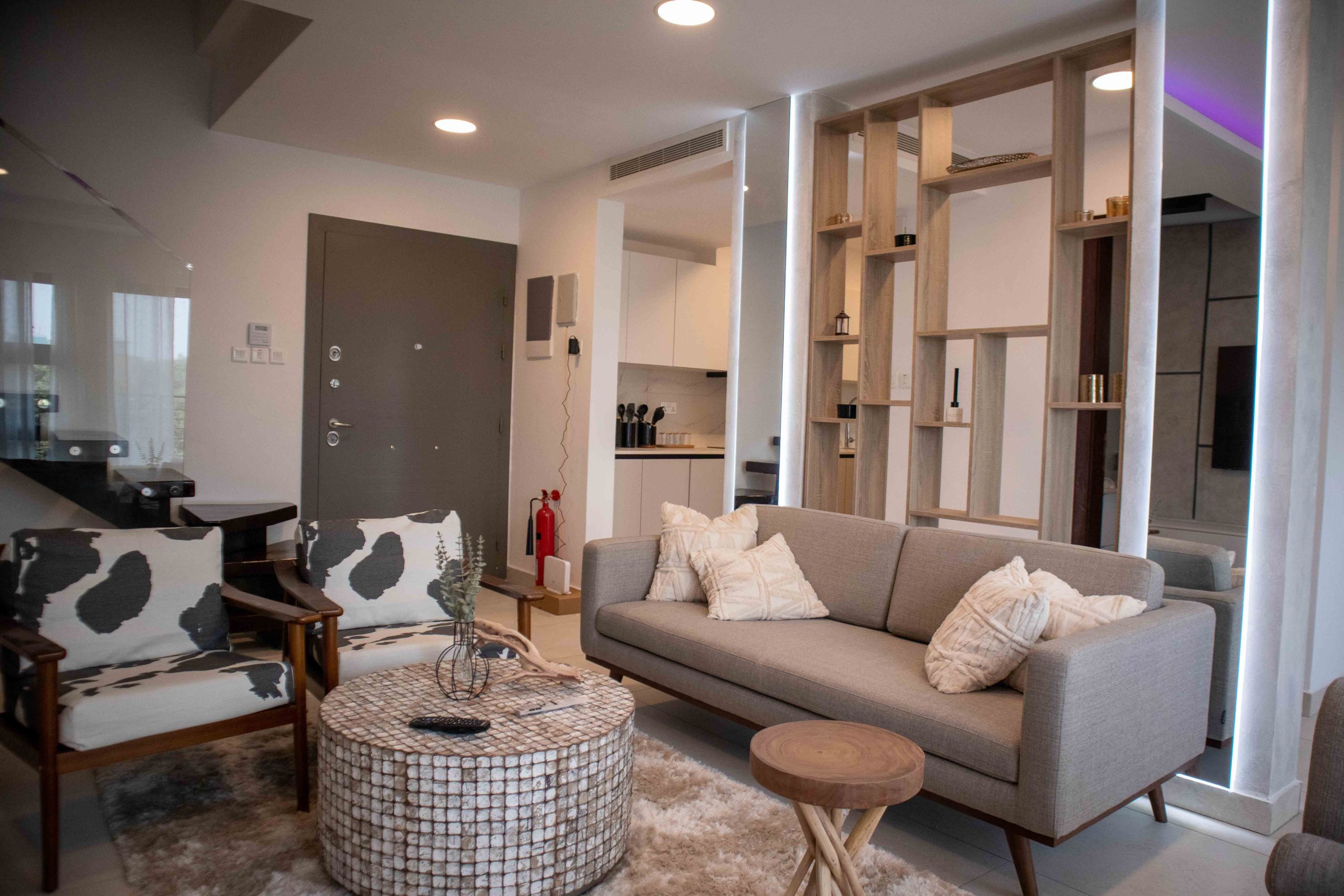 The two-bedroom apartments are offered in 80 sqm and 98 sqm to provide a functional space. Both bathrooms are efficiently designed to stay dry and save water after every use. The fully equipped closable kitchen and utility balcony offer space, lots of light and a well-ventilated space. Each bedroom offers a unique view of the city. The master bedroom is opulently designed, with warming and natural tones to heighten relaxation of the tenant. The apartment has a balcony that serves a range of purposes a short-term or long-term tenant requires. Our two-bedroom apartments come in regular, premium and duplex options.